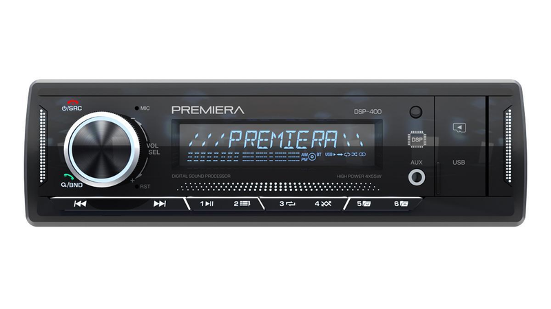 Автомагнитола стандартного размера 1DIN, с Bluetooth и DSP - процессором, которая обеспечивает прием радиостанций в диапазоне FM, воспроизведение медиафайлов MP3, WAV, и FLAC форматов, записанных на карты памяти USB / microSDXC, передачу звука с внешних источников, а также управление мобильным телефоном через интерфейс Bluetooth Hands-Free. Передняя панель автомагнитолы несъёмная, многоцветная подсветка кнопок. Магнитолой можно управлять при помощи приложения PROLOGY MUSIC, установленного на смартфон с операционной системой Android или iOS.